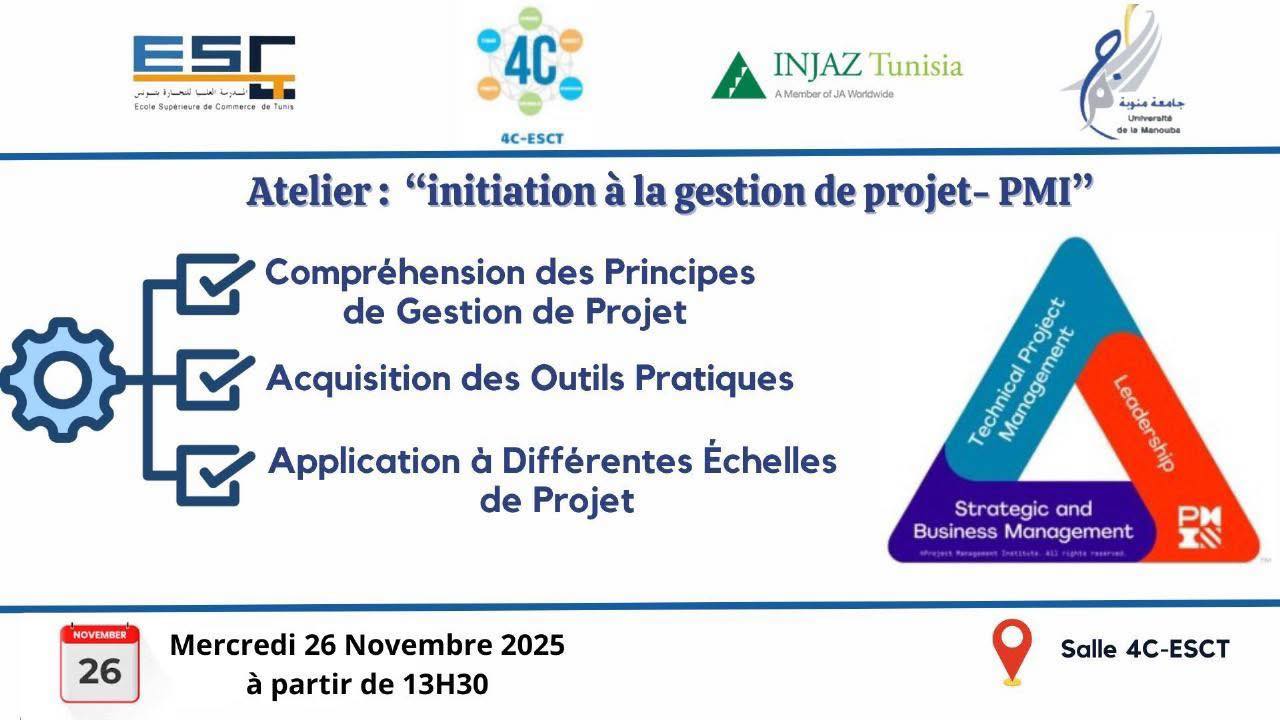 Le Centre 4C ESCT, en collaboration avec INJAZ Tunisie, vous invite à participer à un atelier exceptionnel consacré à l’introduction aux concepts de gestion de projet selon les standards PMI.