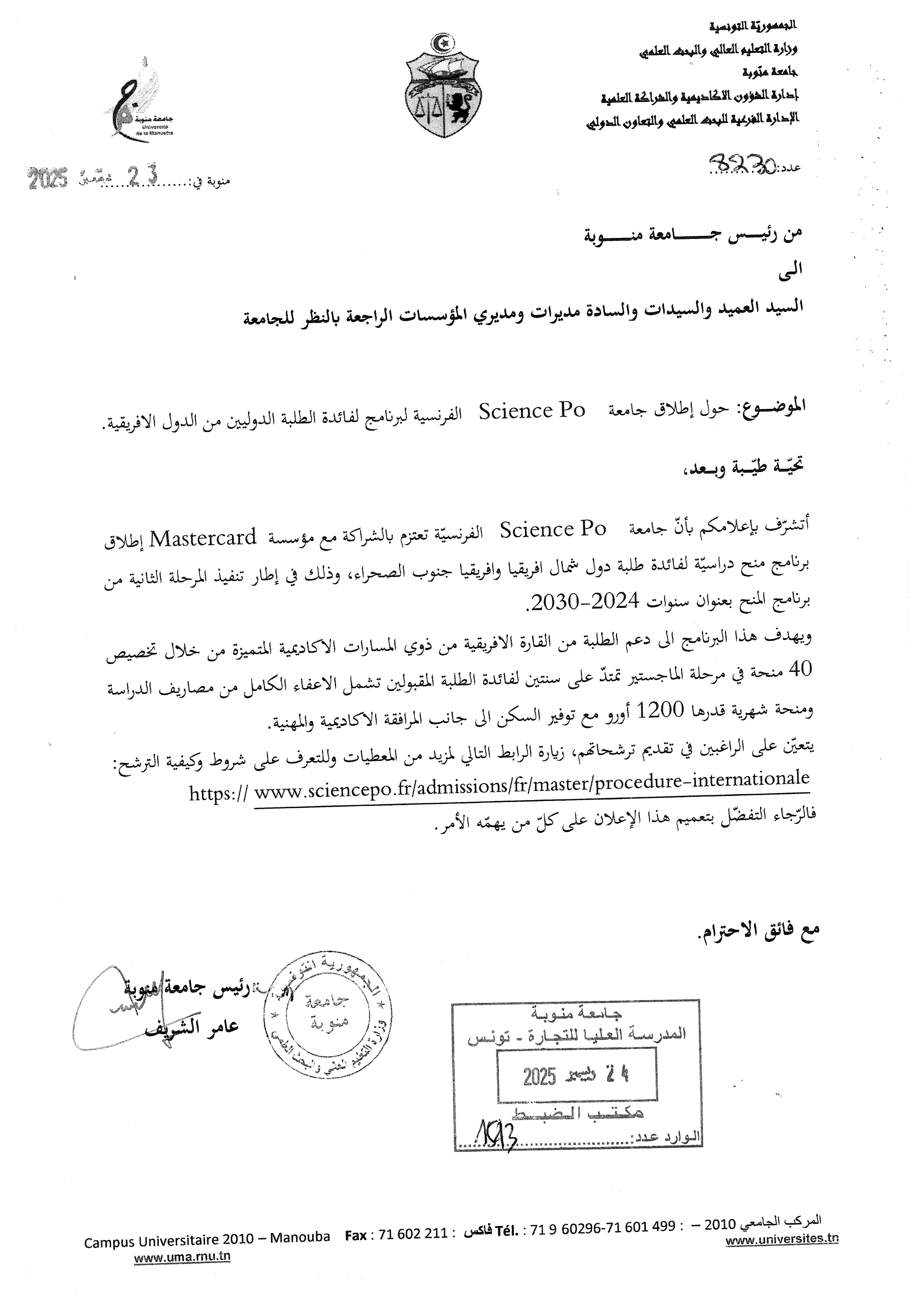 إعلام لفائدة طلبة الجامعات التونسية حول برنامج الفرنسي Science Po